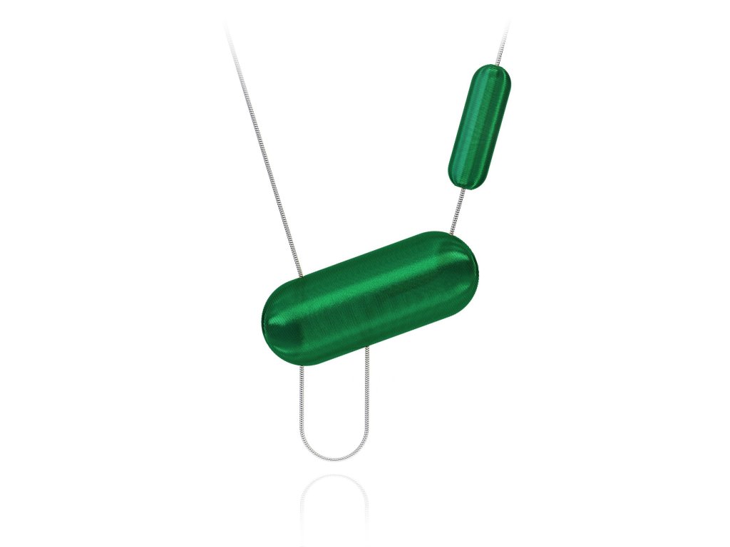 Asymetrický náhrdelník Oválek v lahvově zeleném barevném provedení.