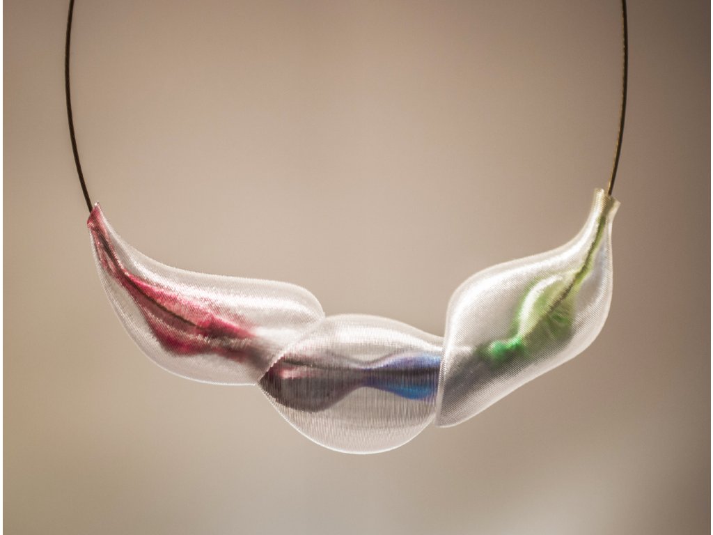 Náhrdelník po vytištění barvíme speciálními inkousty do vnitřní dutiny šperku. Jednotlivé barvy se uvnitř mísí a vytváří akvarelový efekt.