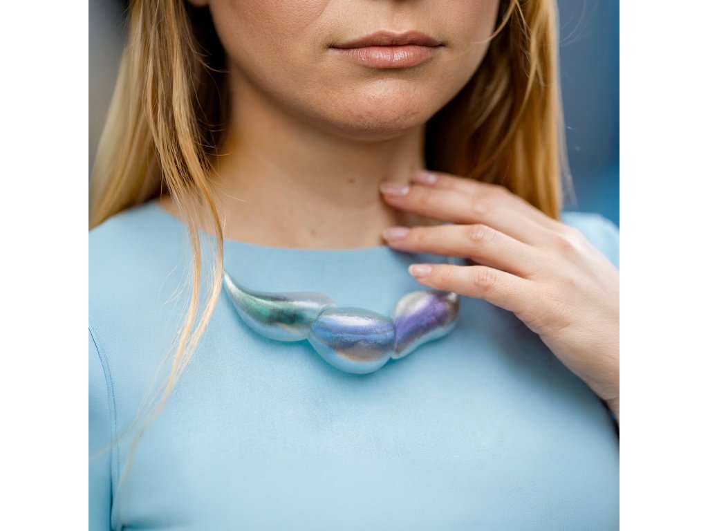 Divoká elegance náhrdelníku je umocněna barvami, které prosvítají z jeho nitra. Náš největší a nejvýraznější náhrdelník, který je vrcholným šperkem kolekce plankton.
