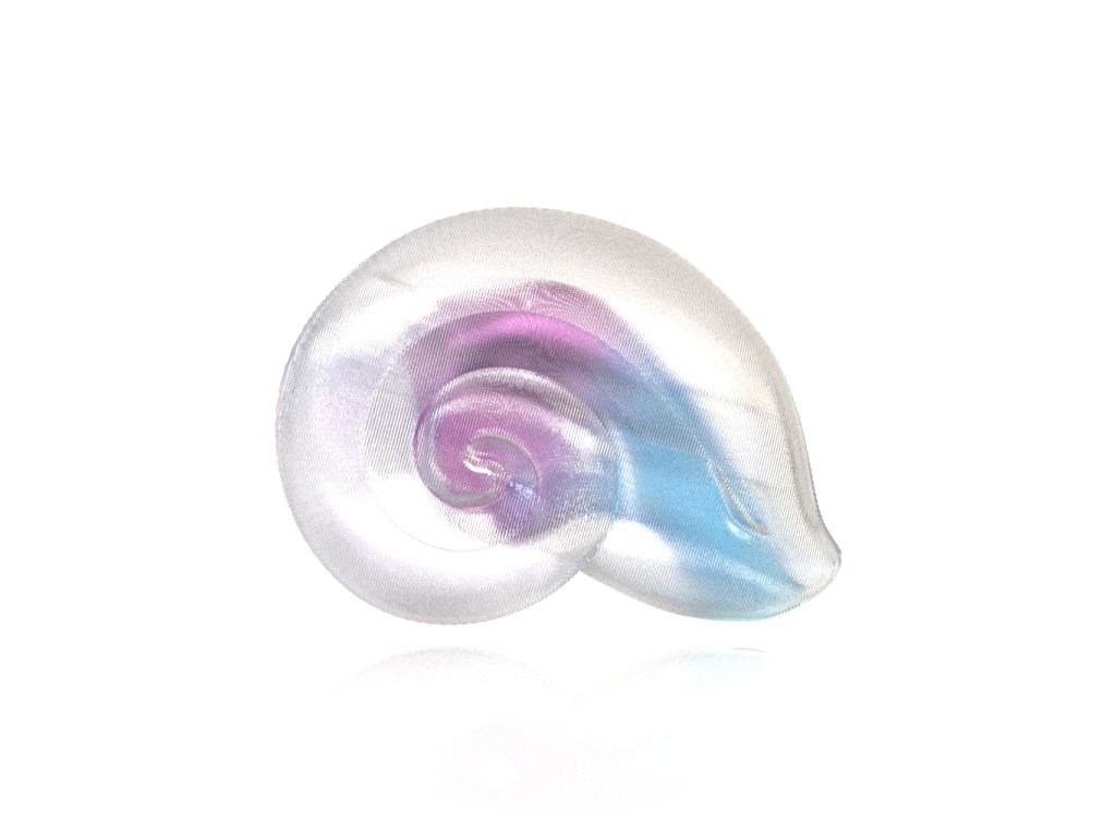 Brož Ulitka je mimořádně lehká a na oblečení působí téměř nehmotně – látku nijak nedeformuje ani nevytahuje. I když svým perleťovým leskem a jemnými přechody barev může působit křehce, ve skutečnosti je překvapivě pevná a odolná.